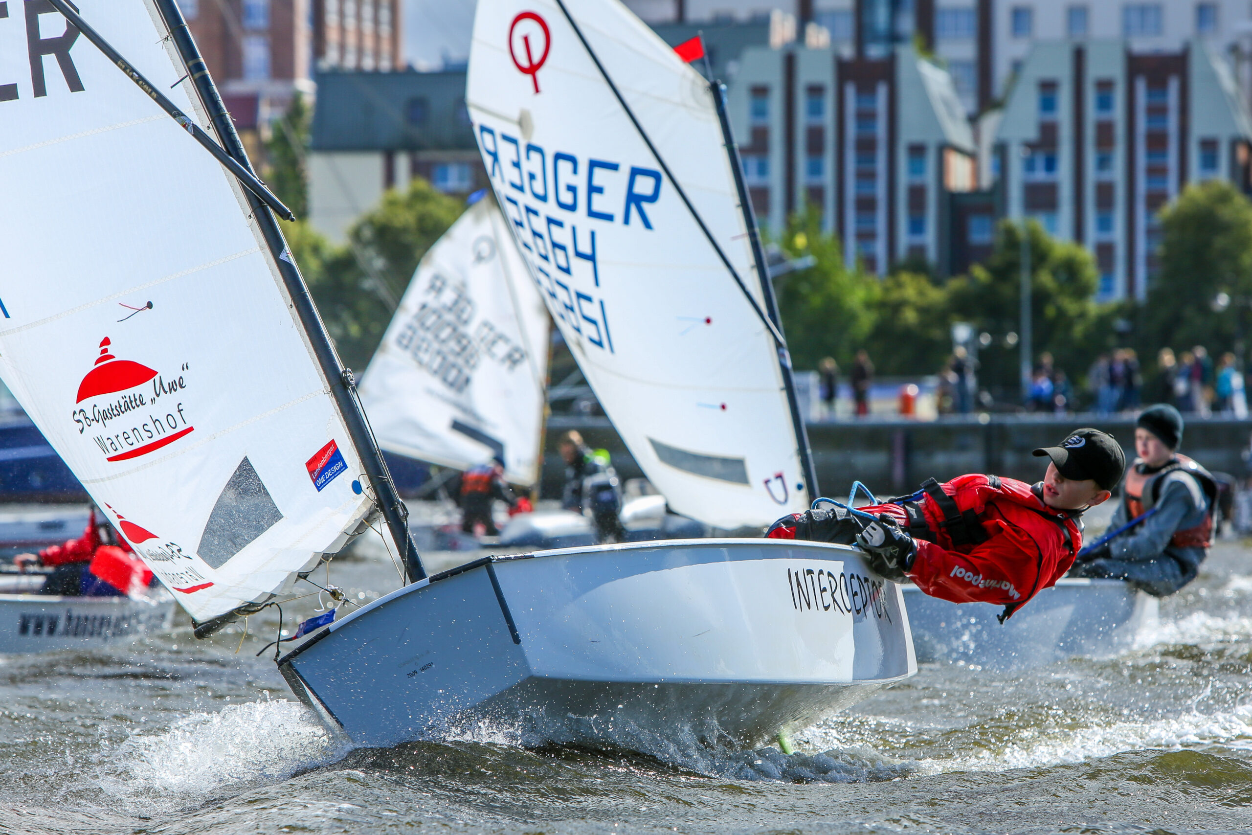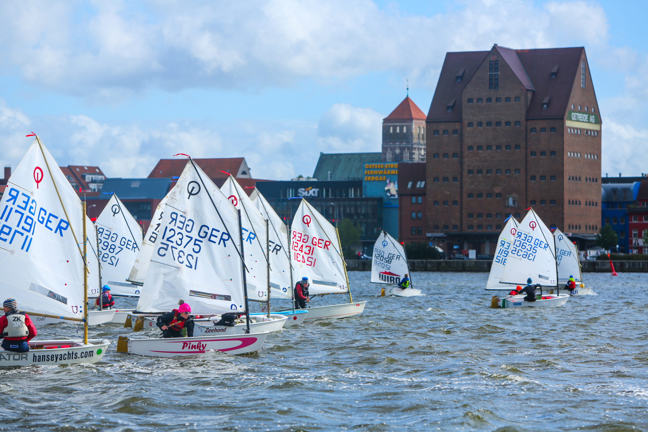 Die Bucht im Rostocker Stadthafen bot ausreichend Schutz für die Optis und sorgte für vier spannende Wettfahrten